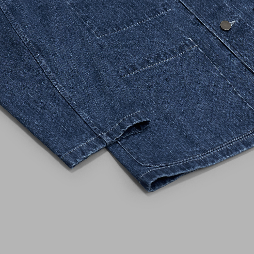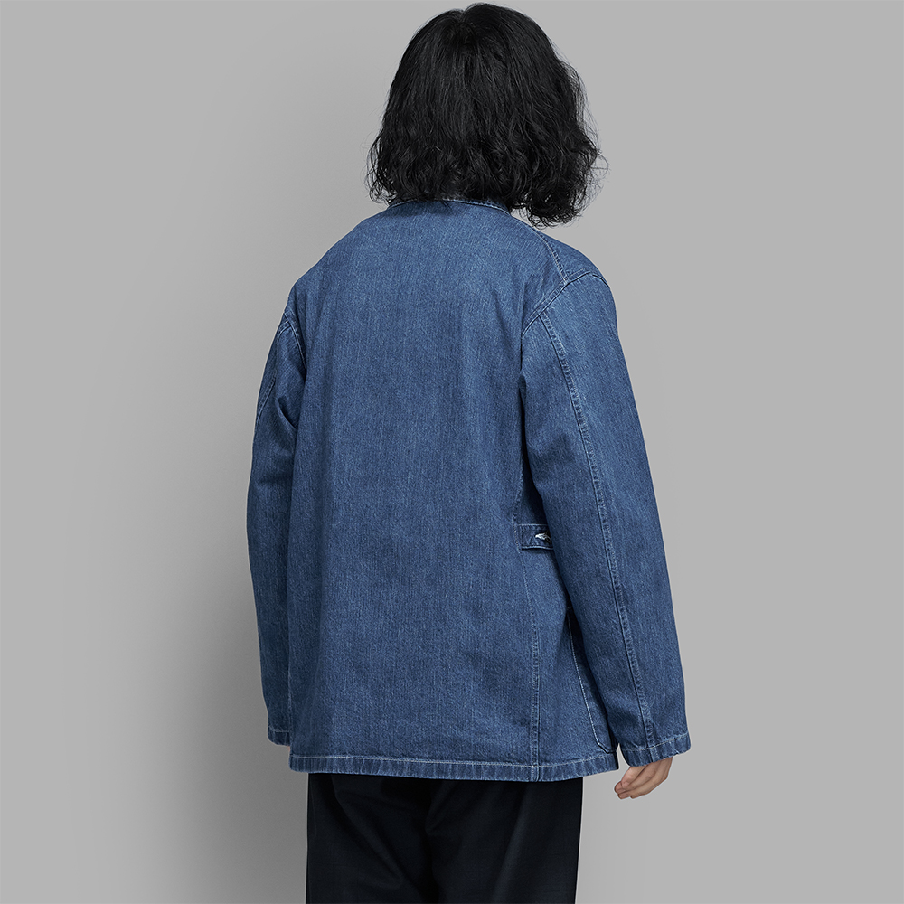 パタンナーTS氏による計算されたサイズバランスや、ディティールのデザインが加わることで、どこか上品な印象も受けるワークジャケットに仕上げられています。そのため、コットントラウザーであわせたカジュアルな着こなしだけではなく、上質なウール地のスラックスなどにもあわせることが可能です。