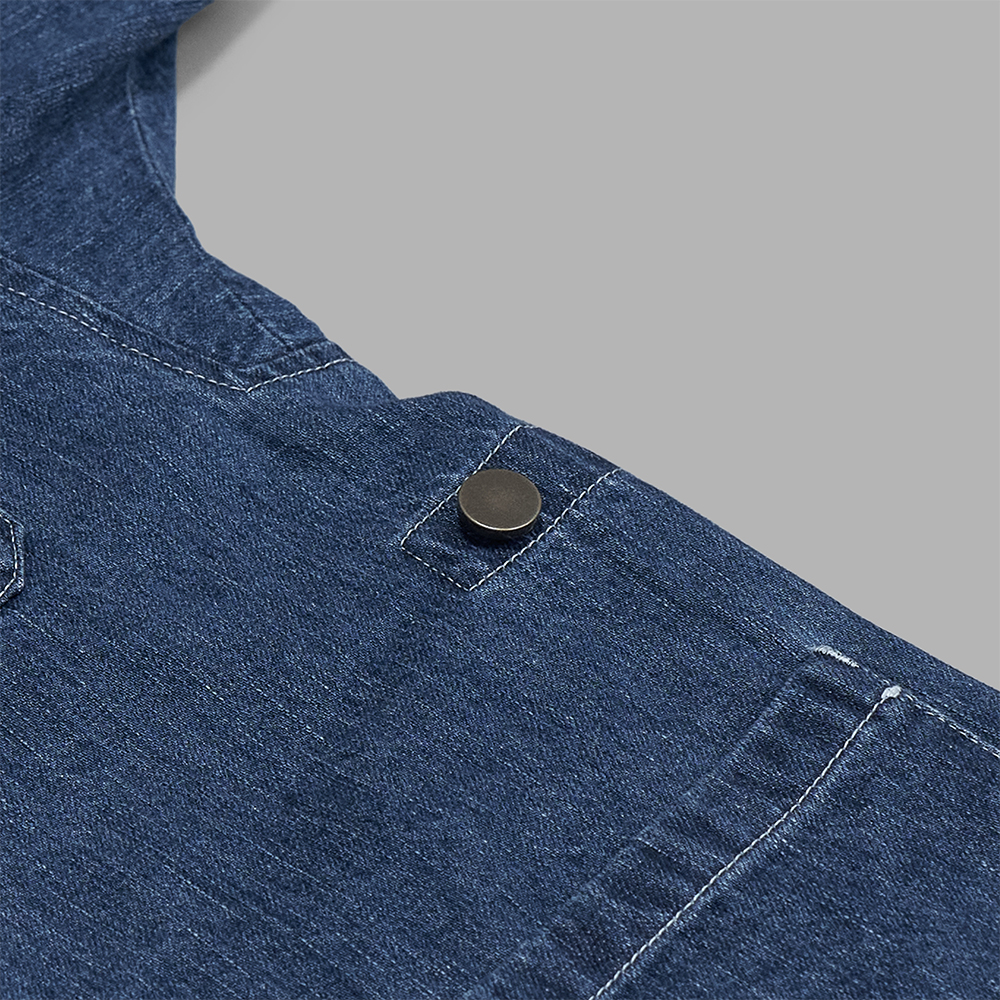 素材には、力織機で織り上げたコシのあるセルビッチデニムを使用しています。あえてヴィンテージのような加工は施さず、着用と洗濯を繰り返すことで生まれる自然な色落ちや、糊が落ちて柔らかな質感へと変化したような風合いを再現しています。また、ステッチの色を白で統一することで、モダンな印象に仕上げているのも特徴です。