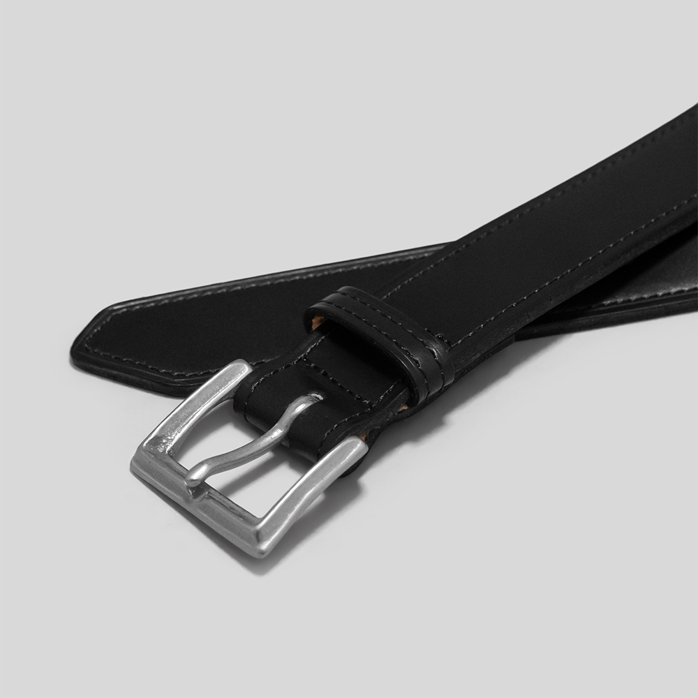 ベルトは日々使うもので、負荷の大きいアイテムのため、長年の使用に耐えうるよう、素材は勿論のこと、玉ネンやコバ処理、ループのステッチなど、しっかりと作り込んでいます。腰回りに綺麗に沿う見た目の良さと実用性を兼ね備えたアイテムです。