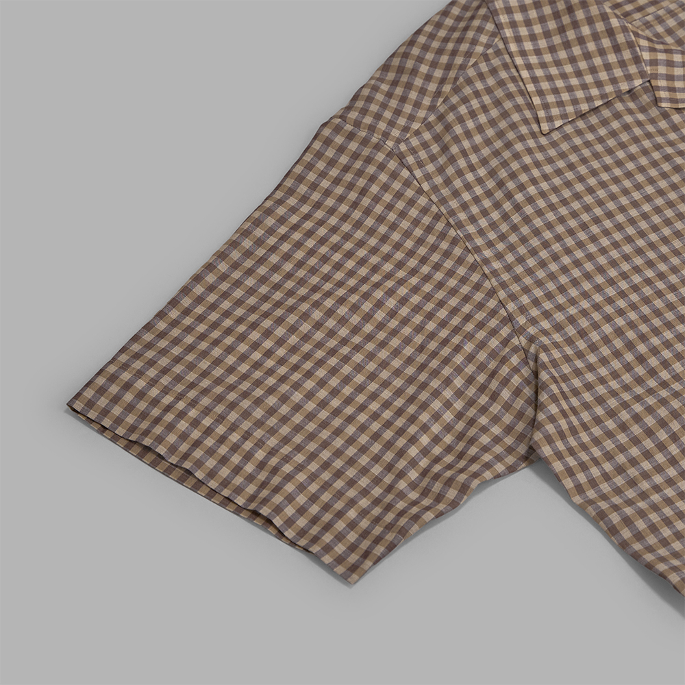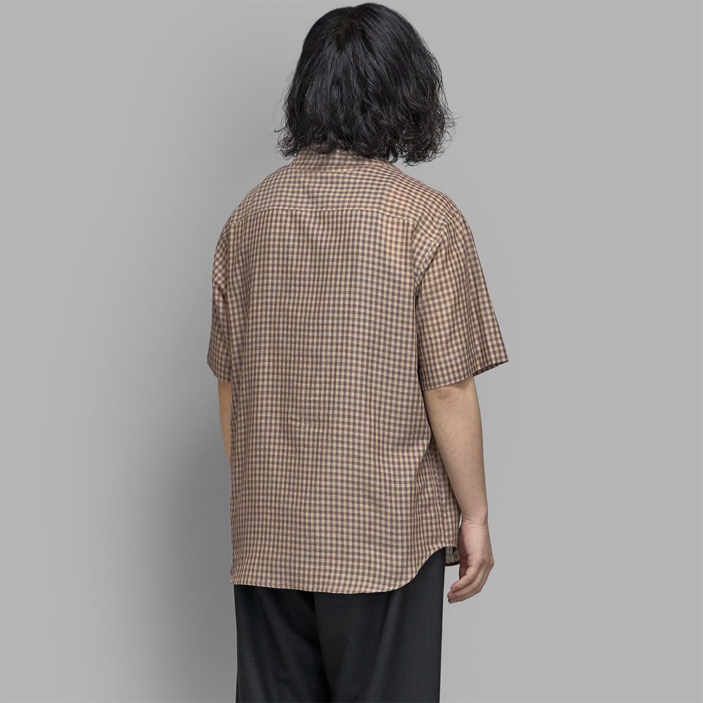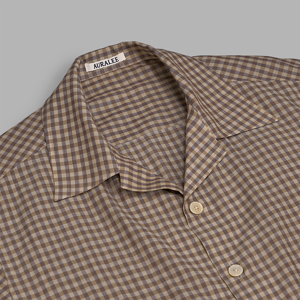 AURALEE / Airy Light Cotton Check Half Sleeved Shirt (Brown Gingham Check)