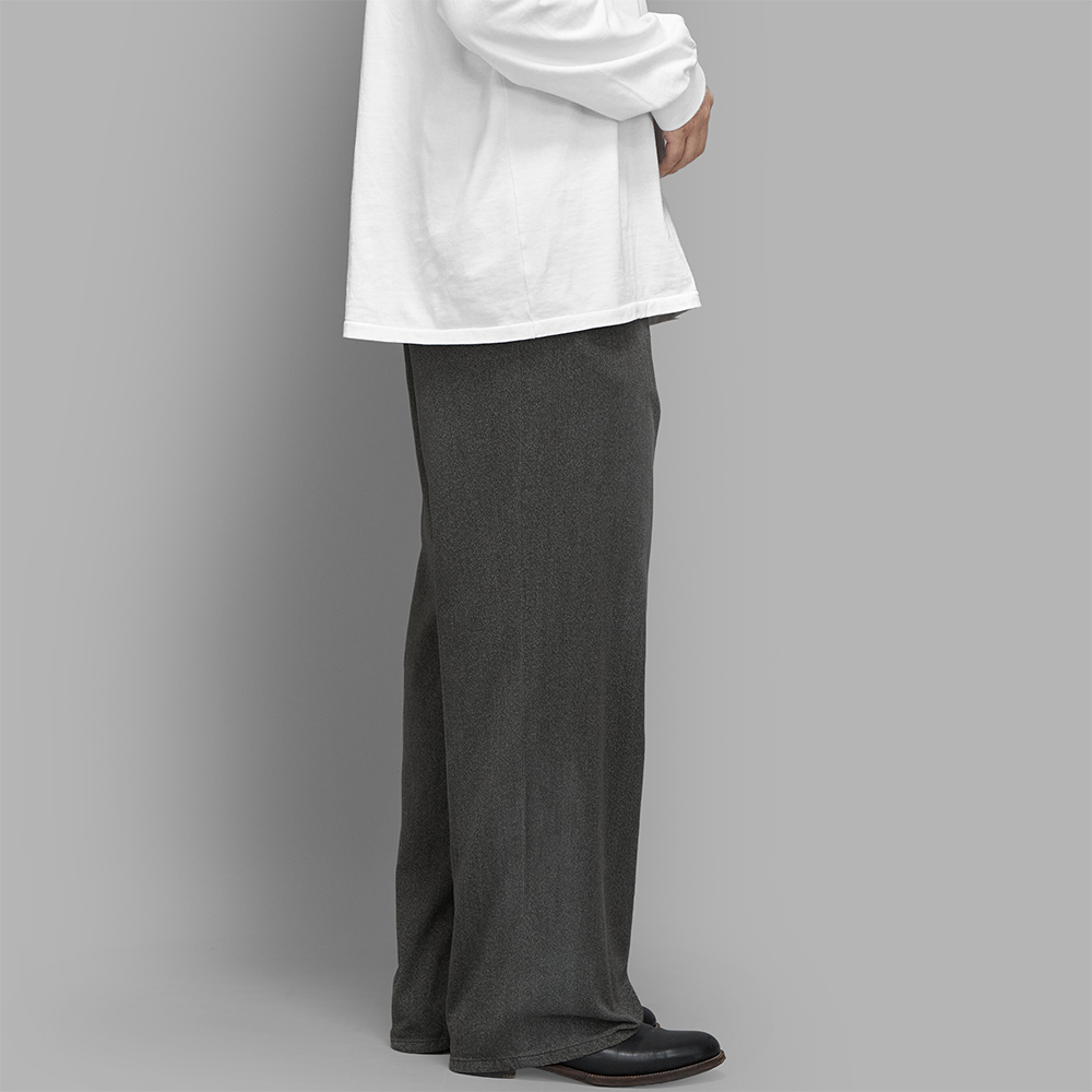 加工はシミや汚れでムラのある絶妙な経年変化を表現しています。ヴィンテージのワークウェアの雰囲気を見事に再現した一本は、上質な生地を使用したシャツやジャケットにさらっと合わせることで、新旧を織り交ぜたスタイルをお楽しみいただけます。また、パンツとしては厚すぎない生地感のため、シーズンを問わず着用いただける点も魅力です。