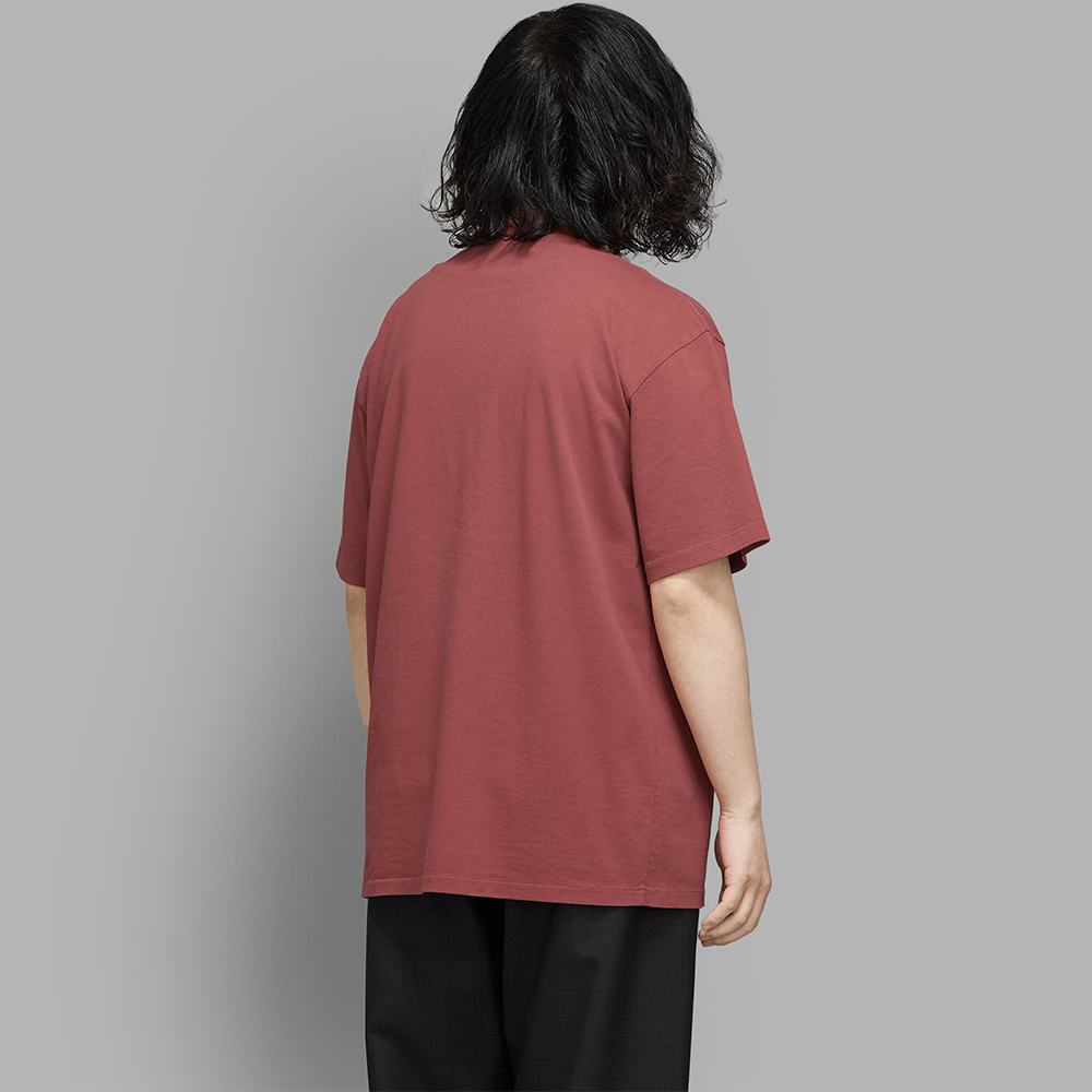 デザインは、アメリカンアンダーウェアの良さを継承し、デニムやチノパンに合うシルエット設計にしたクルーネックTシャツです。シャツの襟元のボタンを開いた際に覗くクルーネックの開きも計算されたバランスに設計されています。