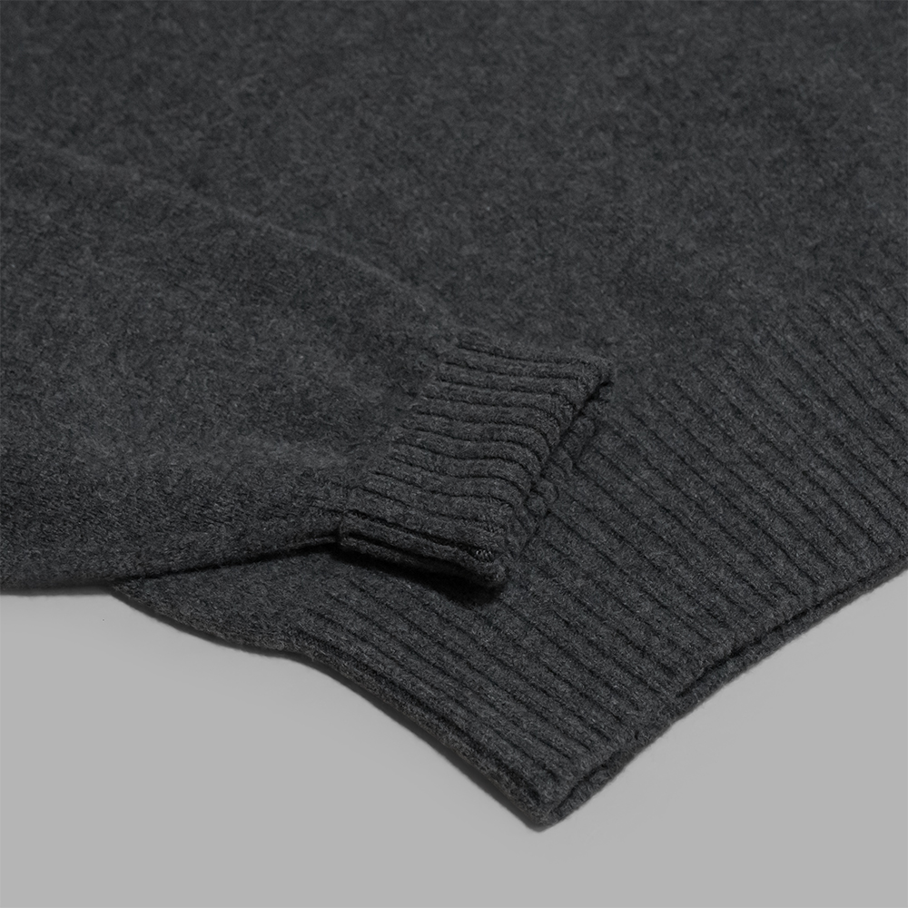 ウールの中でも14.3ミクロンという繊維の細かさを誇り、カシミヤの等級で当てはめても1等級か2等級に値する最高品質のウール原料を使用したニット素材を使用しています。冬でもしっかりと暖を取れる、中肉厚なもっちりとした質感と柔らかなタッチが特徴的です。