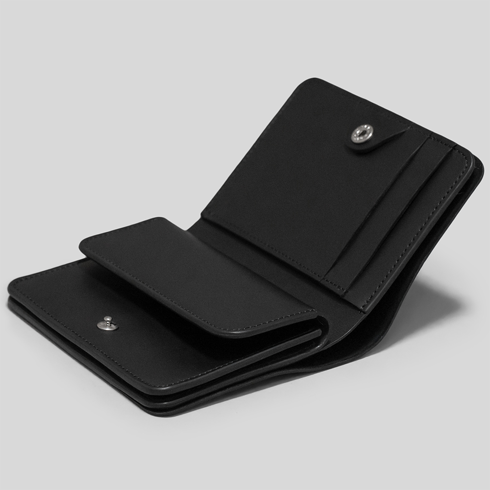 機能面は、以前から展開されているShort Walletと同じオールインワンタイプの仕様を採用しつつ、サイズは一回り小さいコンパクトウォレットとして作製したモデルです。