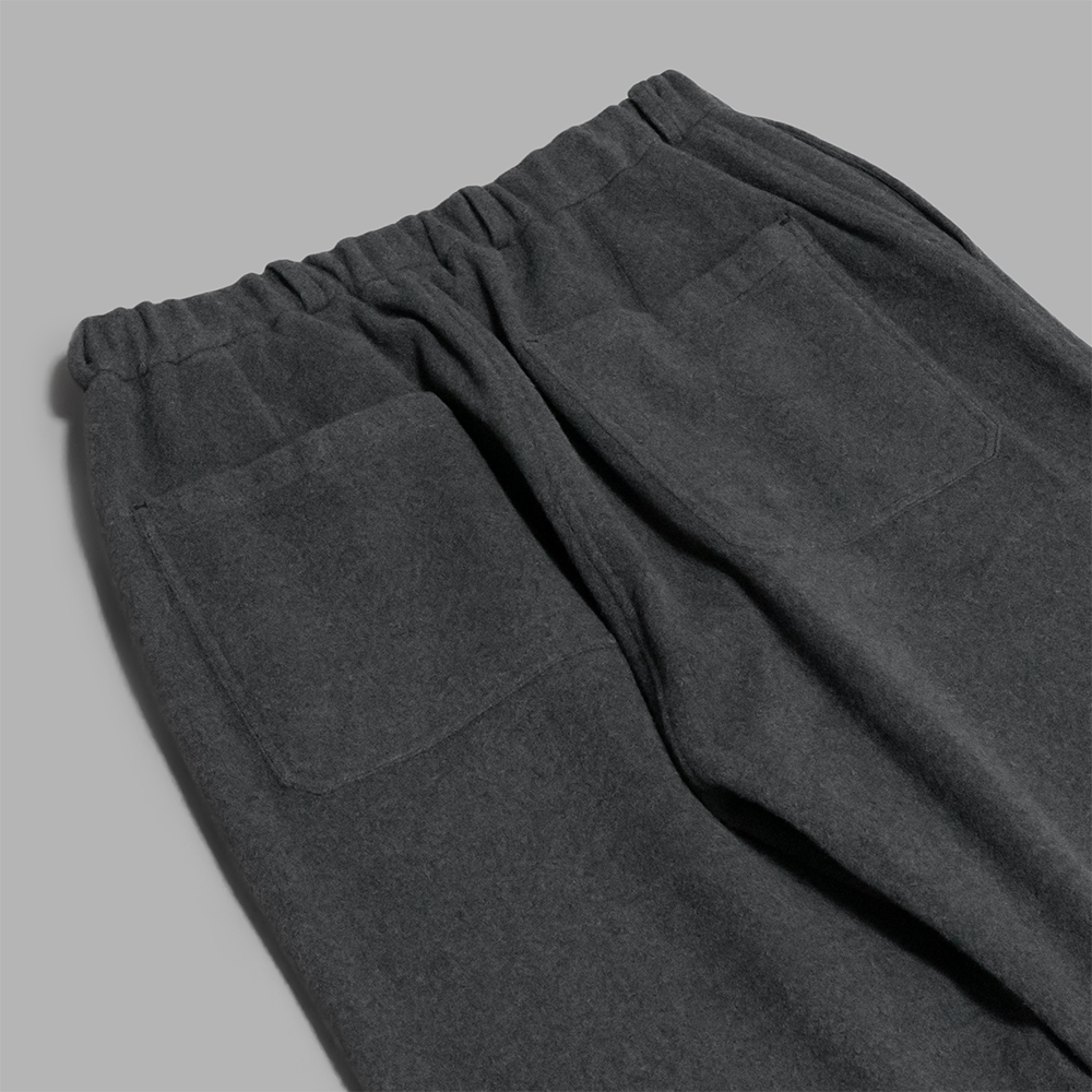 フリース素材の様な温かさと柔らかなタッチでありながら、生地にハリが残っていることで、綺麗なシルエットで着用することができます。起毛加工の施された生地のボトムスはボリュームが生まれるため、秋冬のトップスとの相性が良いのもポイントです。また、ご自宅での洗濯もできるので気軽に着用できる1着です。