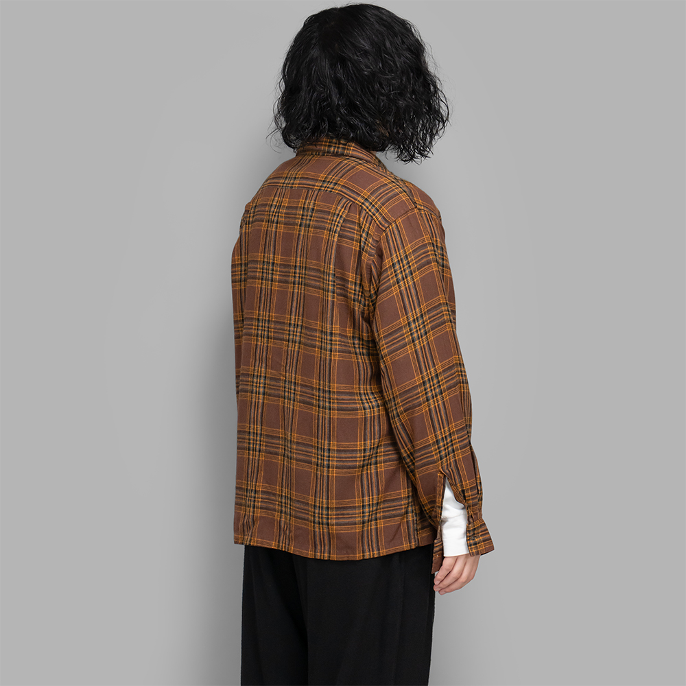 ブラウンを基調とした配色は秋冬のコーディネートにスッと馴染ませてくれます。着こなしとしては、単体着用は勿論、スッキリした着丈のため、テーラードジャケットのインナーにもあわせやすくなっています。また、シャツのインナーにハイネックのハイゲージニットやカットソーなどの着こなしもおすすめです。