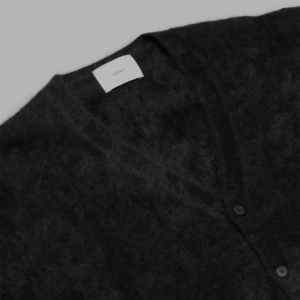 型は、身幅やアームホールには程よくゆとりを持たせ、着丈はすっきりとさせることで、メリハリのあるサイズバランスで製作されたカーディガンです。裾のリブは締め付けが強くなく、縦にストンと落ちるシルエットも特徴です。