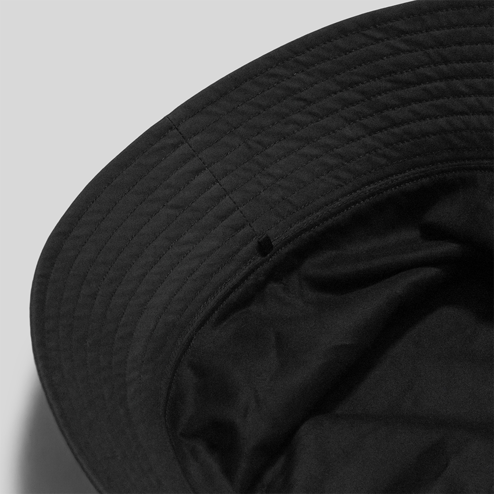 型は、ベーシックなバケットハットがベースとなっています。ツバはやや短めで、スッキリした印象に仕上げられているので、様々なスタイリングにも馴染みやすいです。また、クラウンの高さはしっかりとられているので、頭の大きさや顔の形に左右されずに被りやすく製作されています。内側にはストラップ取り付け用のループが付きます。