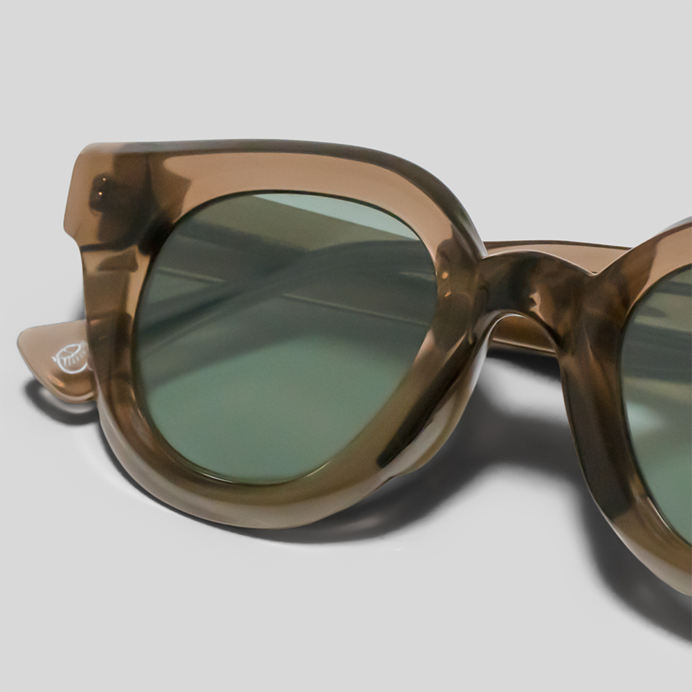 型は、ティアドロップのような少しレトロな雰囲気のレンズ型を採用しながらも、フォックス寄りのようなやや釣り上がったようなフレームを調和させることで、無骨でありながら洗練された印象のアイテムに仕上がっています。
