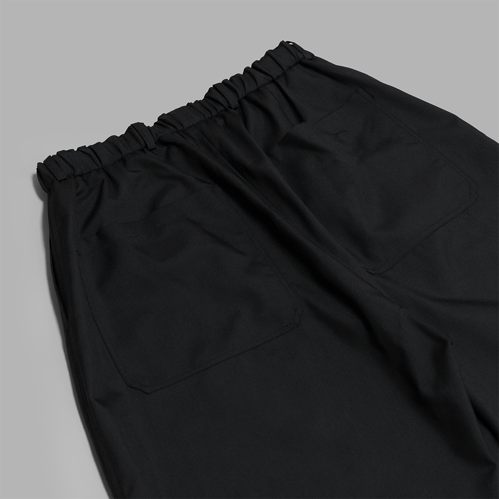型はMITTANの定番であるストレートシルエットのパンツで、程よいゆとり感と適度な丈感が特徴です。ウエストはゴム仕様になっており、内側の紐でベルトなしでも快適に着用できますが、ベルトループも配しているため、ポケットをしっかり活用する際などにベルトを使用することも可能です。