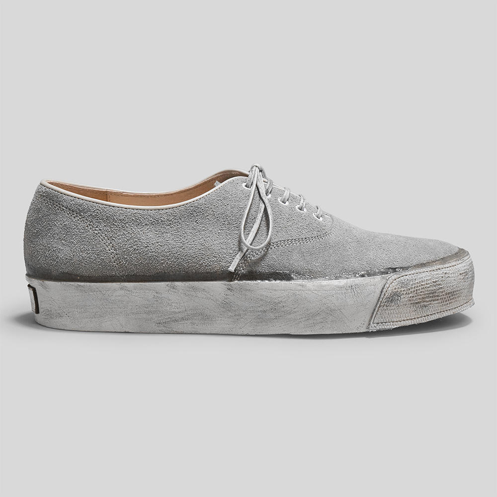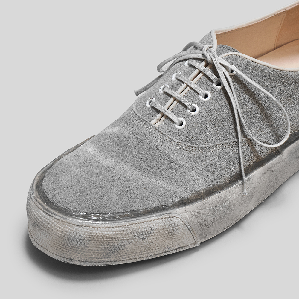 USミリタリーのボートシューズとジョージア・オキーフの汚れたコモドールから着想を得て、ベロア、ピッグヌメ、ステアなど多様な革素材を用いてデザインされたレザーヨットシューズです。