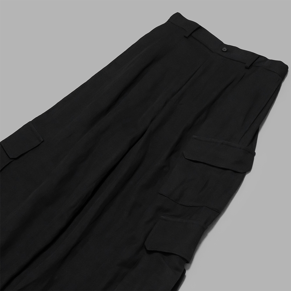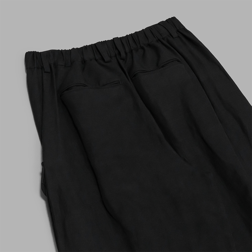 同ブランドが得意とするスラックスをベースに、無骨な印象のカーゴパンツを素材感で柔らかな印象に仕上げています。また、バック部分のみイージー仕様を取り入れることで、見た目は一般的なトラウザーズでありながら、ウエストの収まりが良く、裏地がないので春先から秋先にかけて着用しやすいアイテムです。暑い時期のシンプルなスタイリングにも変化をつけてくれます。