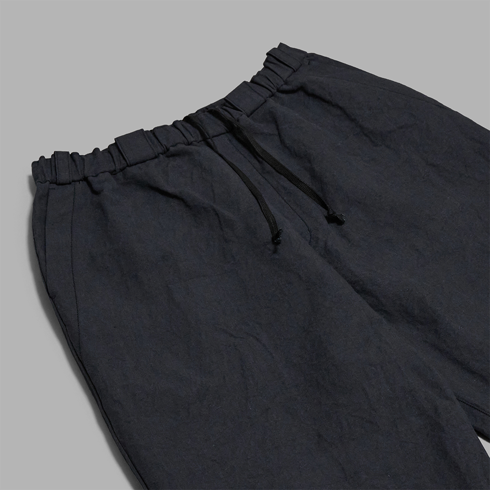 生地のハリとカラッとした質感により、肌にまとわりつきにくく、真夏でも快適に着用いただけます。また、天然素材ならではの風合いを活かした奥行きのある表情は、同ブランドが展開する麻や絹のトップスをさらりと合わせるだけで、シンプルながらも雰囲気のあるスタイルを演出します。春から秋口まで、シーズンを通してお楽しみいただける一本です。