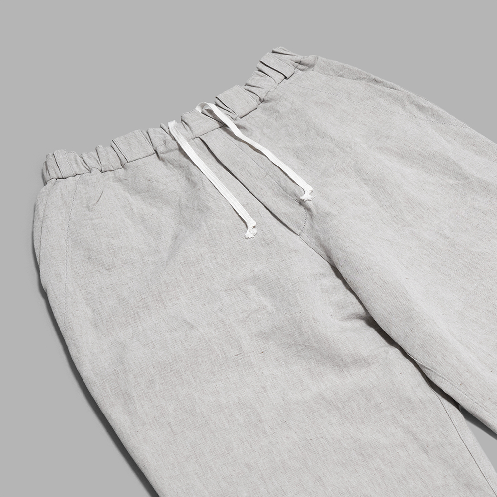 生地のハリとカラッとした質感により、肌にまとわりつきにくく、真夏でも快適に着用いただけます。また、天然素材ならではの風合いを活かした奥行きのある表情は、同ブランドが展開する麻や絹のトップスをさらりと合わせるだけで、シンプルながらも雰囲気のあるスタイルを演出します。春から秋口まで、シーズンを通してお楽しみいただける一本です。