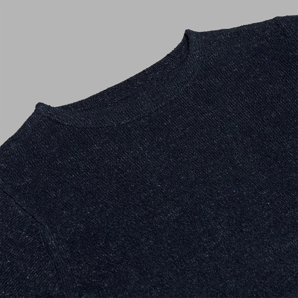 シルクとリネンの糸を混紡して編み上げることで、編み地の安定性を高めながら、古着特有のしっとりとしたドライタッチを表現しています。