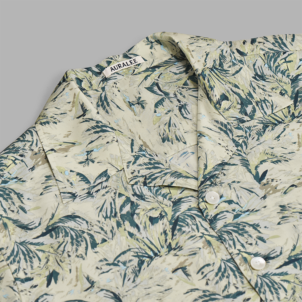 AURALEE / Printed Airy Silk Half-Sleeved Shirt (Pale Green)