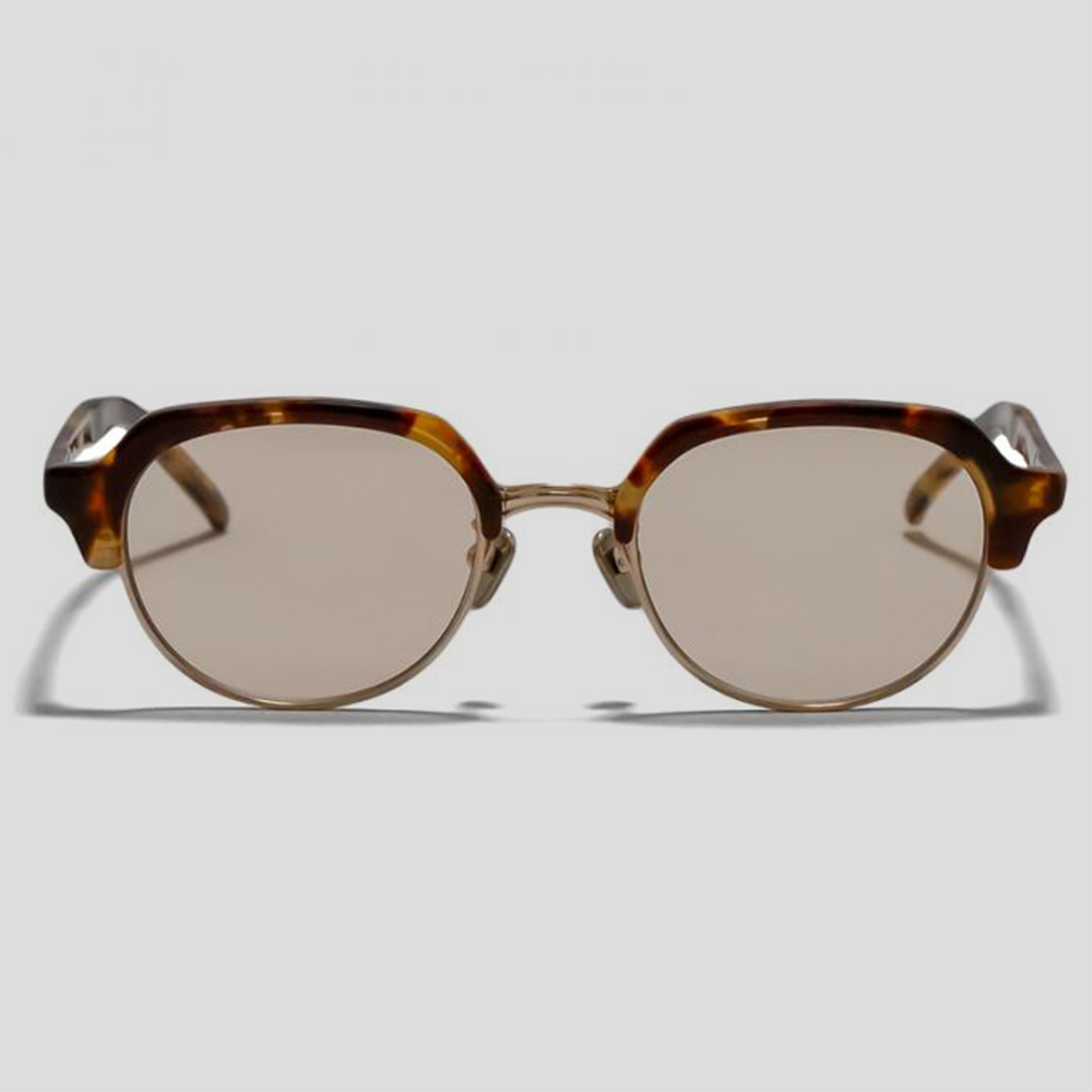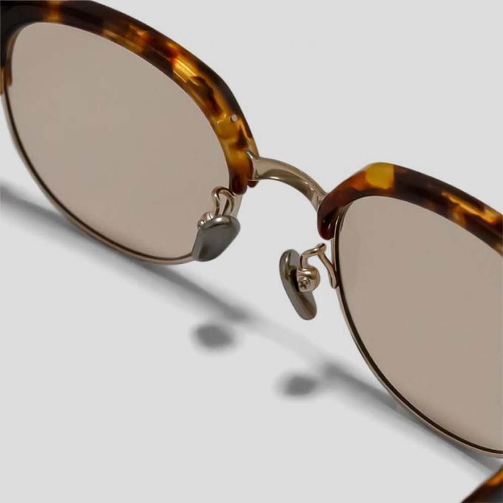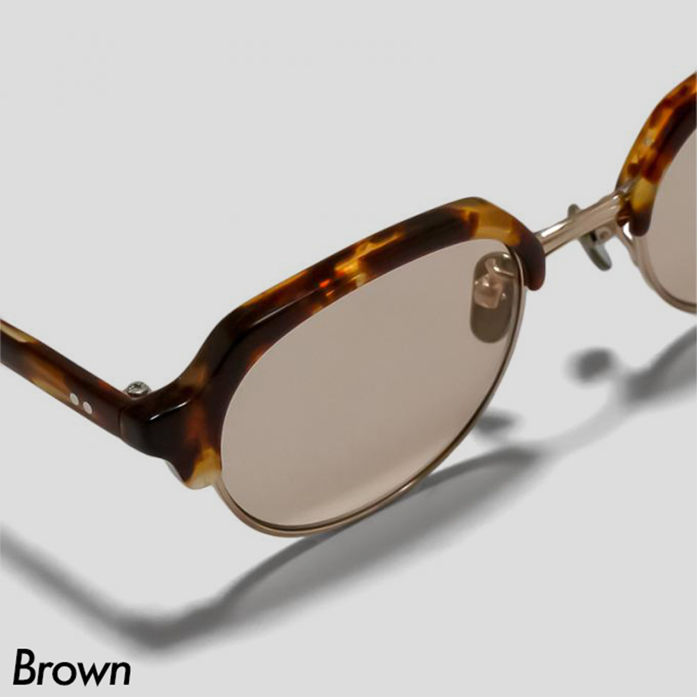 素材はチタンのフレームにセルロイドを組み合わせることで、丈夫で軽い掛け心地の眼鏡に仕上げています。また、サイズバランスがとてもいいことも特徴です。お顔の形やサイズに左右されることなく対応するよう、レンズ幅を少し広めにとっています。