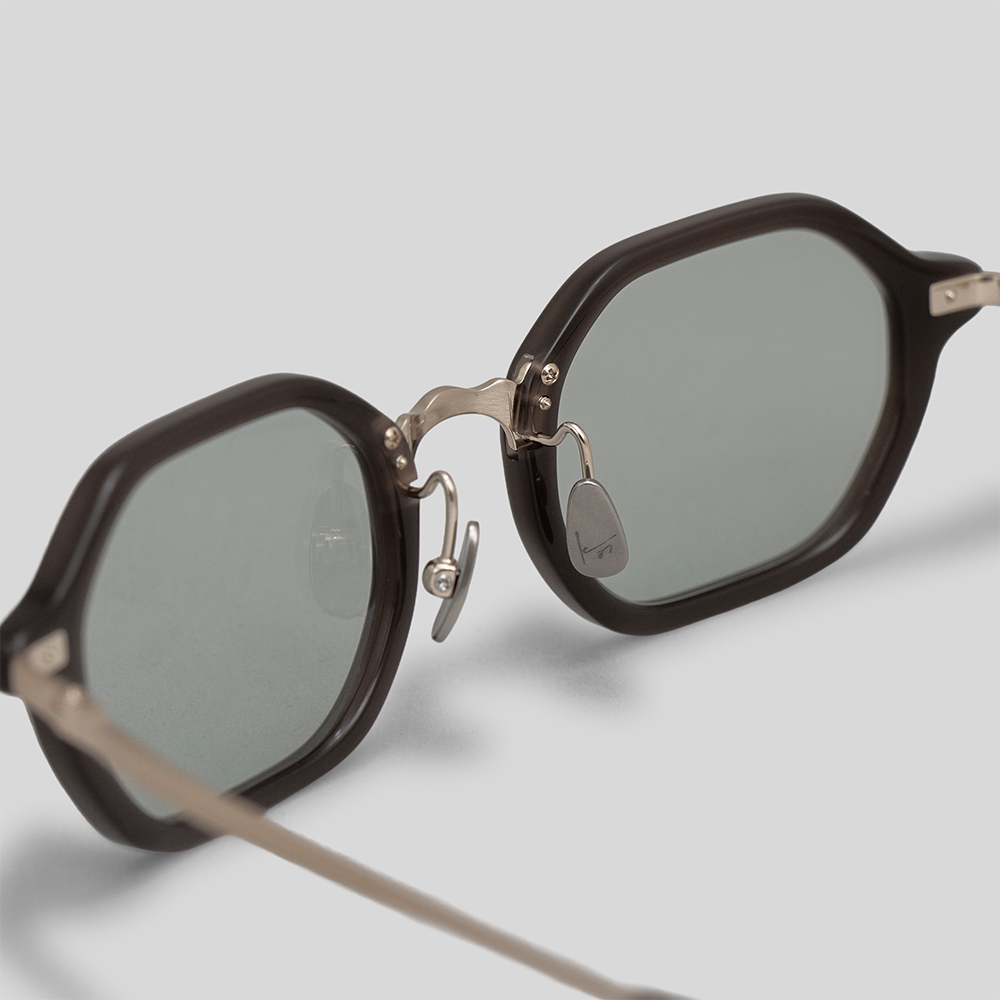 それぞれ異なる印象を持つ、チタンとアセテートを組み合わせることで、硬質さと有機的な表情が共存する佇まいに仕上がっています。