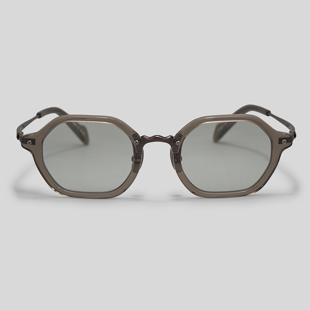 型は、六角形をベースに、角を程よくラウンドさせ、天地幅やフレーム幅を微調整することで、柔らかな印象の中にも、シャープな雰囲気を感じられるデザインです。