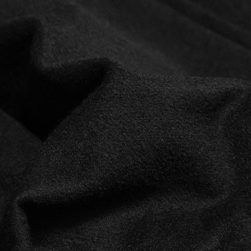 Super120’sのジーロンラム原料に、内モンゴル産のカシミヤをブレンドした混紡糸を極限まで薄く織り、シャルムビーバー加工を施した素材を使用しています。薄くて軽く、しなやかで膨らみのある風合い、微光沢のある美しい生地の表情が特徴的です。