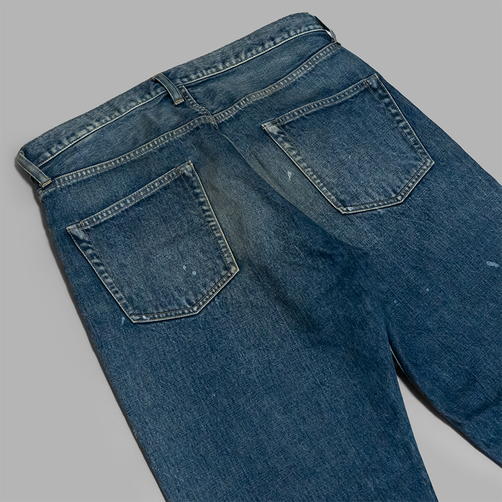 通年で履ける程よい厚みのコットンデニムを使用しています。縦ムラの強いデニムに加工をかけることで、ヴィンテージさながらの雰囲気に仕上げています。