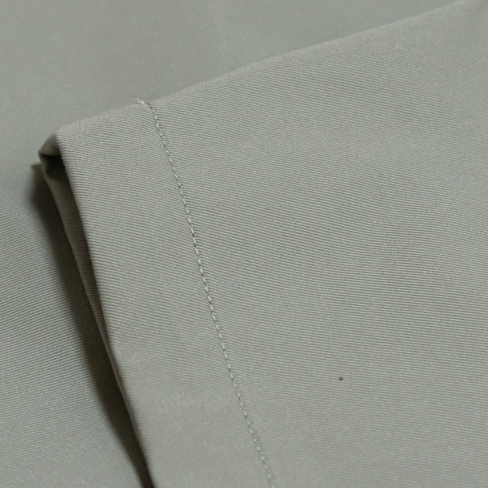 日本国内メーカーの特殊加工により、綿100でありながら、程よい反発感とふくらみに、適度なドレープ性も備えるため、通常の綿の商品と比べて優れたものとなっております。その風合いの良さは製品にした際にきれいなシルエットとなって現れます。