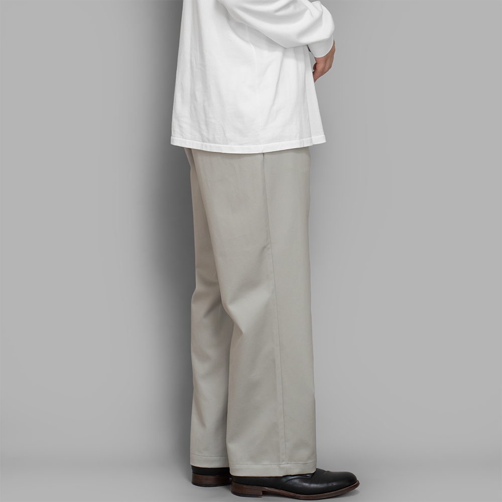型は70年代のワークパンツをベースにほどよいゆとりを持たせて、綺麗なシルエットが出るように設計されたストレートパンツです。ポケットはブランドアイコンのL字型ポケットを縦向きに付けており、前立てはジップフライの仕様で作られています。