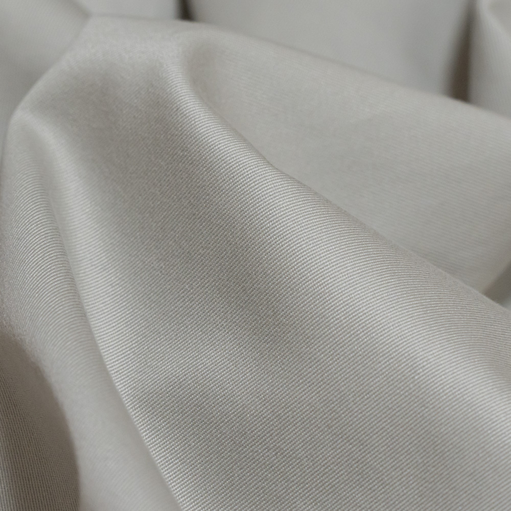 日本国内メーカーの特殊加工により、綿100でありながら、程よい反発感とふくらみに、適度なドレープ性も備えるため、通常の綿の商品と比べて優れたものとなっております。その風合いの良さは製品にした際にきれいなシルエットとなって現れます。