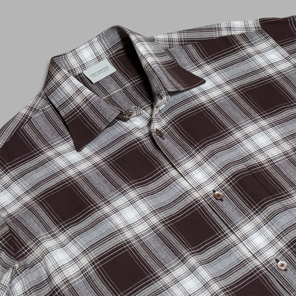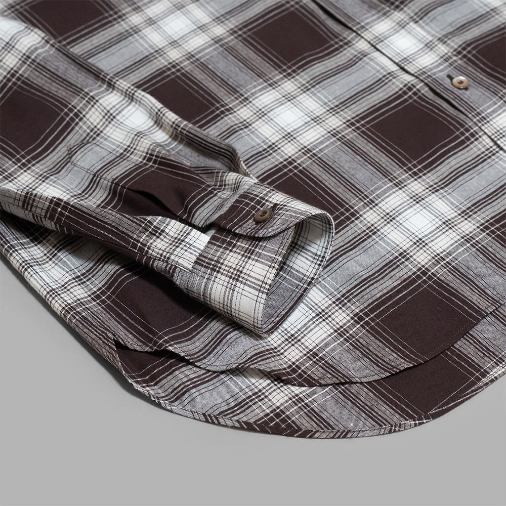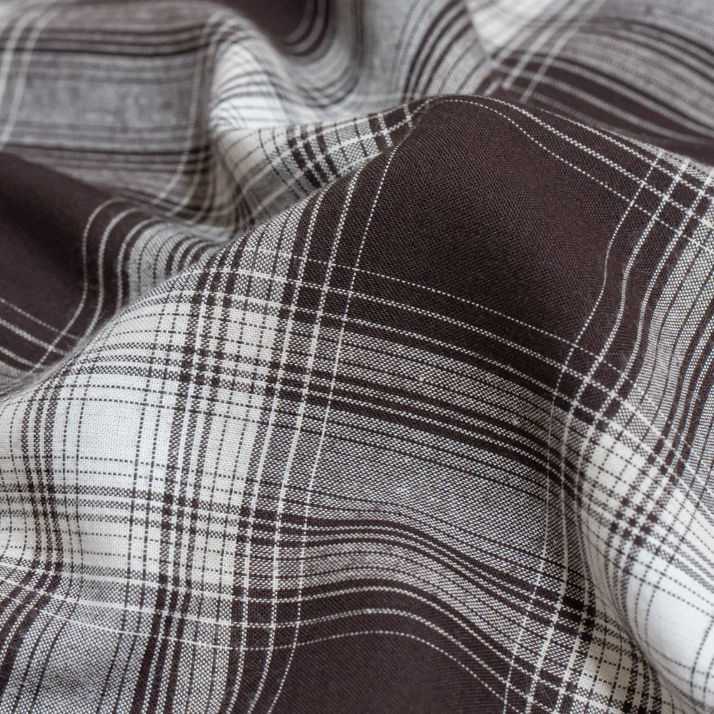 濃淡のグラデーションが綺麗なチェック柄が特徴のレーヨン素材を使用しています。質感は滑らかながら光沢感のある生地で、家庭での洗濯も可能です。