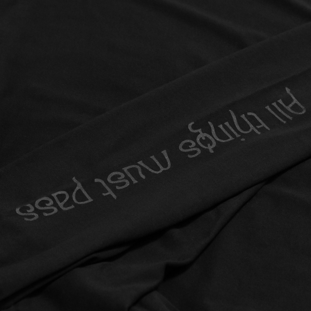 しっとりした柔らかな着心地が特徴で、袖には、「All things are impermanent」「All things must pass」のプリントが入ります。
