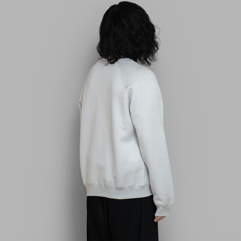 通常の杢やオートミールカラーのスウェットと違い、品のある印象を感じる晒し杢の色味は、カジュアルからドレスアイテムとの合わせまで幅広く合わせられる汎用性の高さも魅力です。