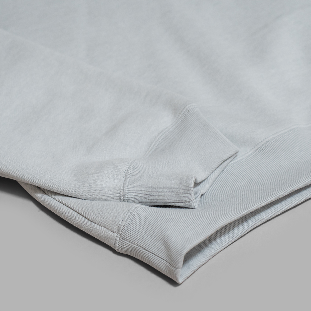やや青みを感じるライトグレーの独特な色味を表現された、晒し杢カラーのコットン裏毛を使用しています。
