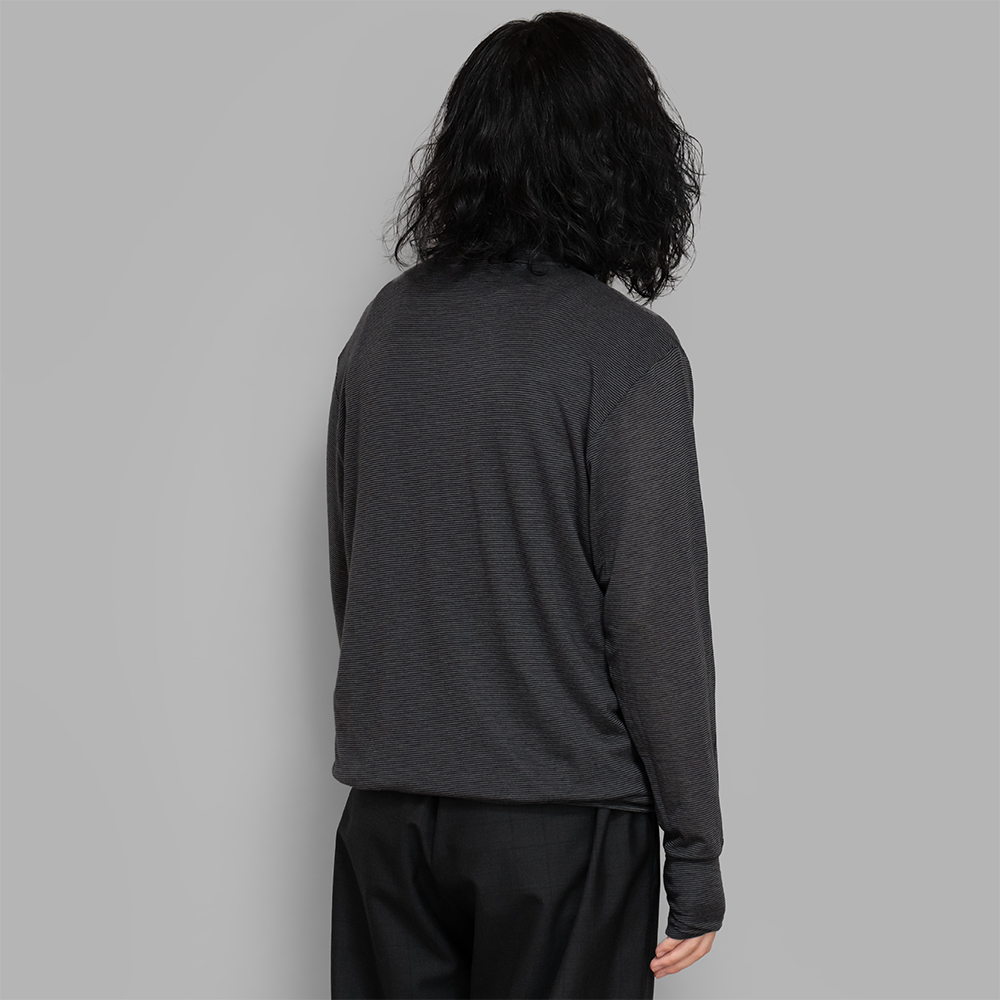 単体での着用でも雰囲気良く合わせることができますが、秋冬のスタイリングでシャツやジャケットのインナーとしてバランス良く収まるので、とても重宝するアイテムです。