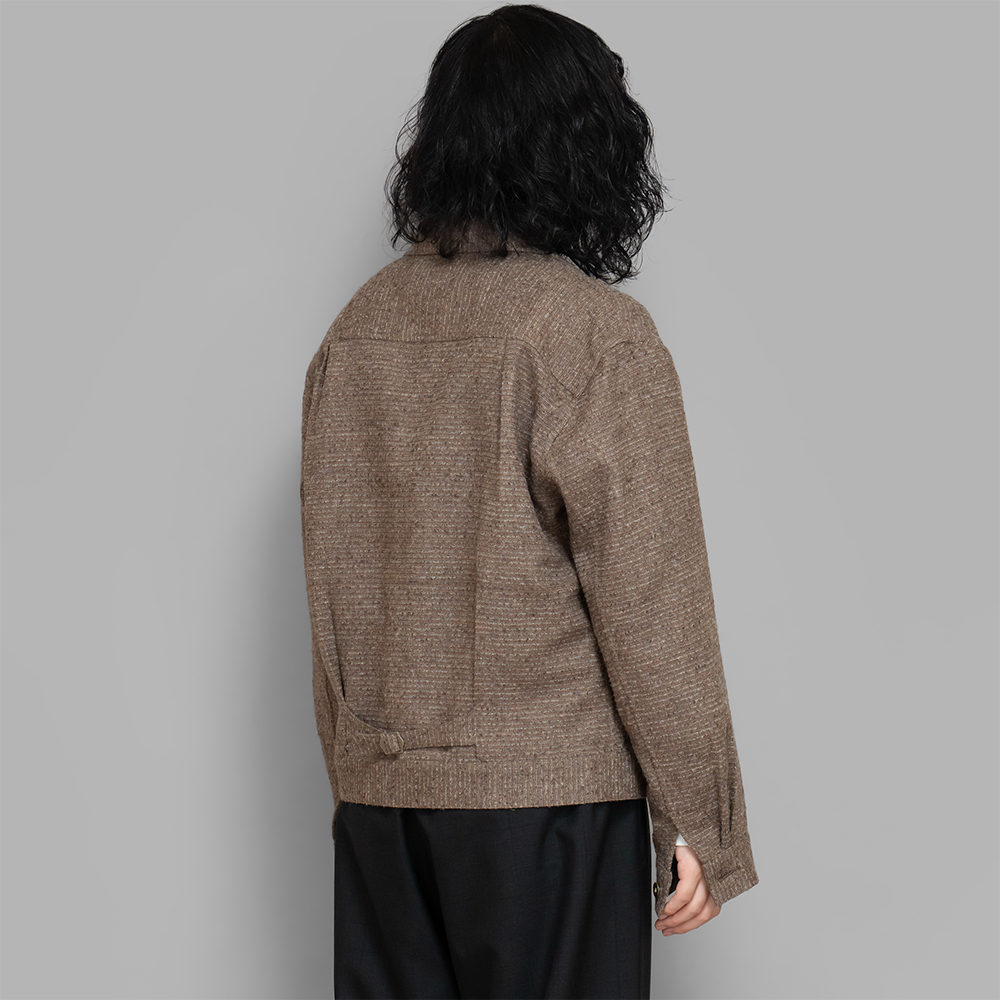 型は、すべてのGジャンの原点とされる1st型で、これまでの同ブランドの服には無いような新鮮さを感じるアイテムです。また、前身頃のタック部分は、英国の40年代頃のヴィンテージの糸を使用し、それぞれ手縫いで一点止めされており、同ブランドらしい細部まで拘りの詰まったアイテムとなっています。ボタンはタック釦を使用しており、ワークウェアらしさを忠実に再現しています。