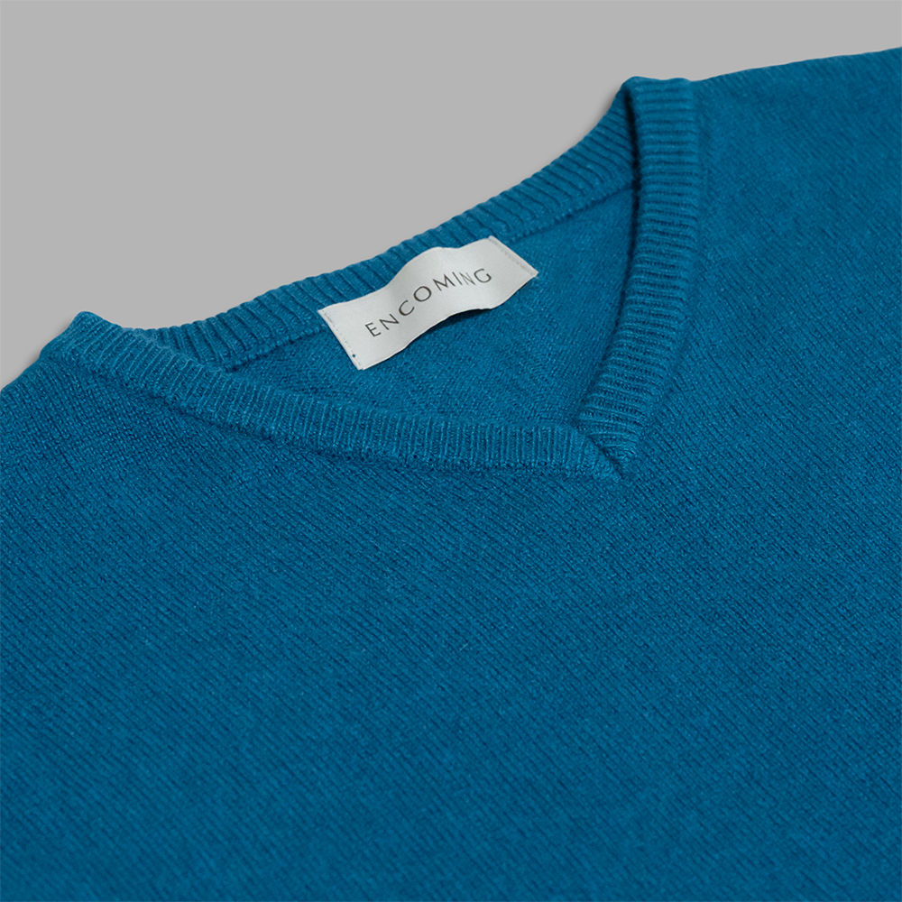 ENCOMING / Knitted V Neck Jumper (Blue)