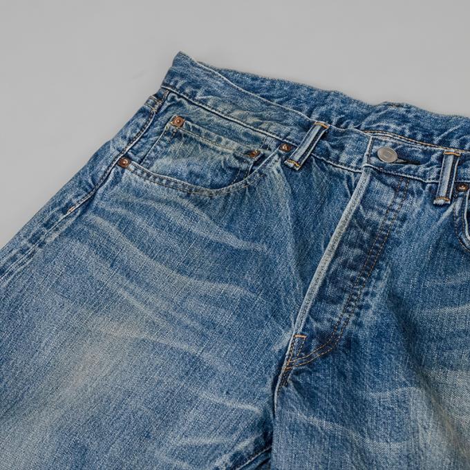 生地は50's後半から60's前半頃の501XXの糸使いを再現してしっかりと打ち込んだ、13ozの赤耳付きセルヴィッジインディゴデニムを使用しています。縦落ちの表情がとても良く、ヴィンテージ感のある生地に仕上げています。