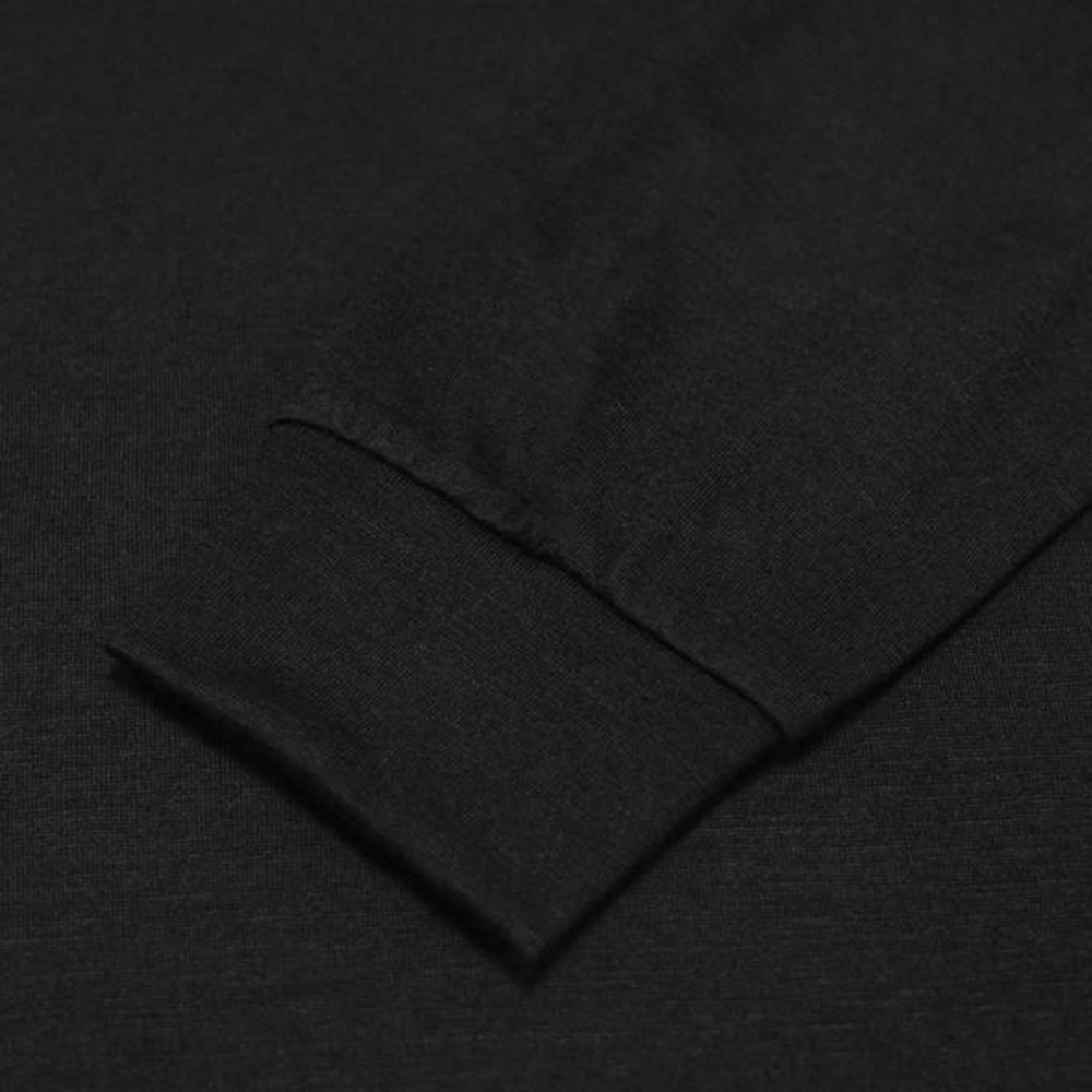 上品な光沢のある生地は、単体でさらっとあわせるだけでも雰囲気のあるコーディネートができます。また、薄手の生地のため、ジャケットやシャツのインナーにもお勧めです。秋冬を通して活躍する大変使い勝手のいい1着です。