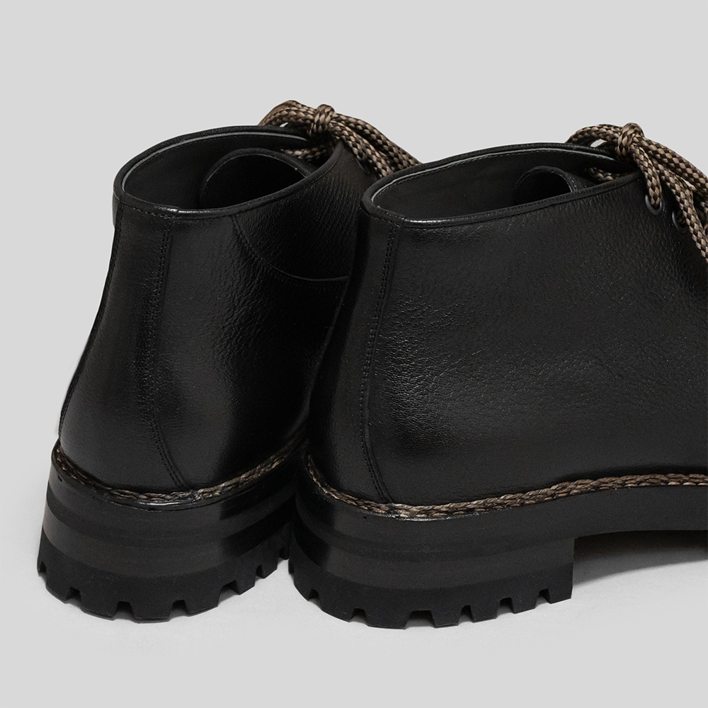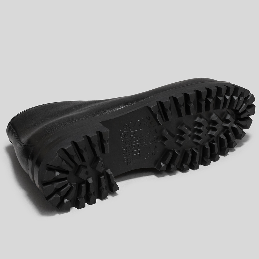 ソールはイタリアのSt.MORITZ社のラグソールを使用しています。本格的な登山靴にも採用されており、高いグリップ力やクッション性が特徴的なソールです。ラバーソールだけではなくレザーソールを間に挟み積み上げているため、雨天時の安定した履き心地と高級感あるデザイン性も併せ持っています。厚みのあるソールですが、トゥスプリングを設けて歩きやすい仕様に仕上げています。