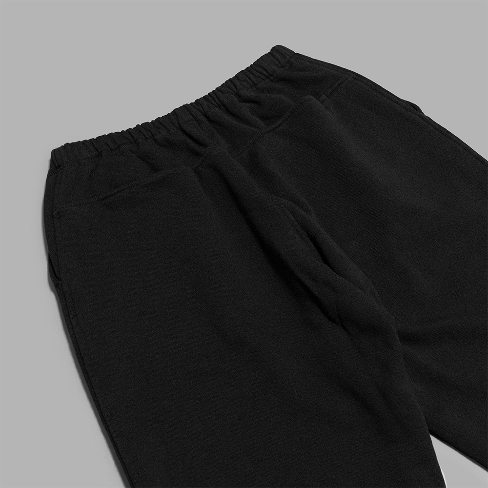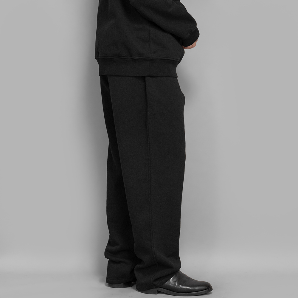 黒のスウェット上下で、上にアウターを羽織るだけで、シンプルに楽でかっこよく見えるスタイルをお楽しみいただけます。