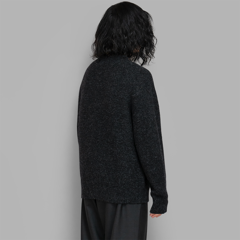 保温効果の高いベビーアルパカとウールを使用したニットは、比較的軽量に仕上がっており、重ね着をする秋冬の時期でも軽快な着用感で合わせていただけます。