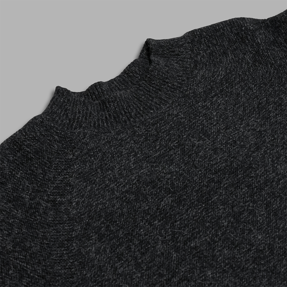 滑らかな質感のベビーアルパカと、柔らかな質感を持つウールの混紡糸を編み立てたニット素材を使用しています。