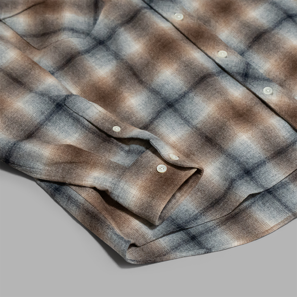 アメリカのペンドルトンのオンブレチェックを彷彿とさせるオーセンティックなアメリカンヴィンテージの雰囲気を醸し出しつつ、イタリアの生地を組み合わせることで、また異なるニュアンスのアイテムに作り上げています。そのため、デニムからスラックスまで様々なアイテムと合わせることができます。
