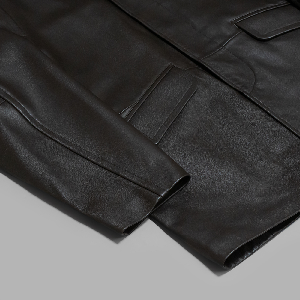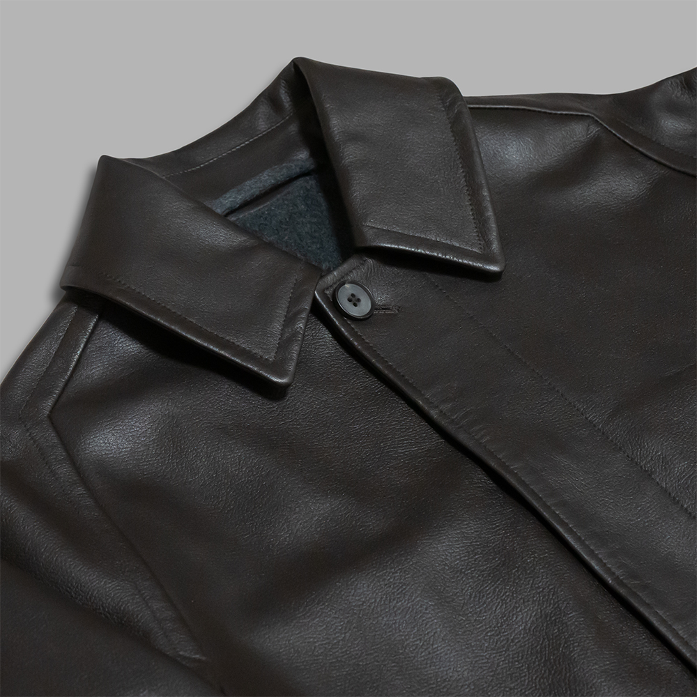 スパニッシュラムレザーや裏地のカシミヤといった贅沢で上質な素材使いでありながら、どこかラフに合わせたくなるようなカジュアルさを感じるのもこのアイテムのポイントで、様々なスタイルで楽しめる1着です。