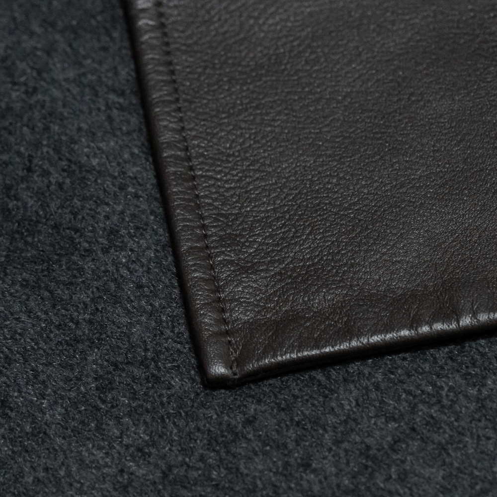 良質な原皮から成るスペイン産のラムレザーを使用しています。薄くして軽さを出しても、ハリ感が残る特性を活かしたレザーは、ラムレザーのしなやかな印象だけでなく、細かなシボによる力強い質感も特徴です。