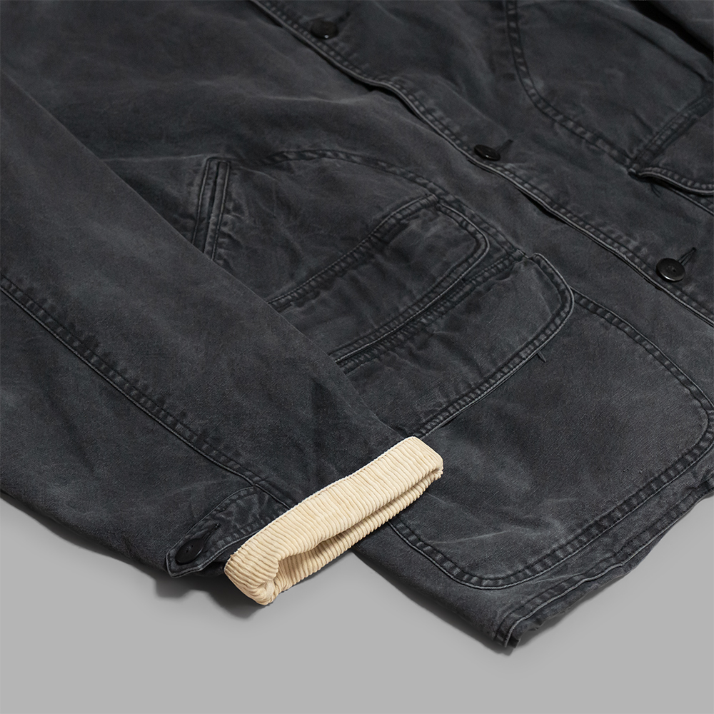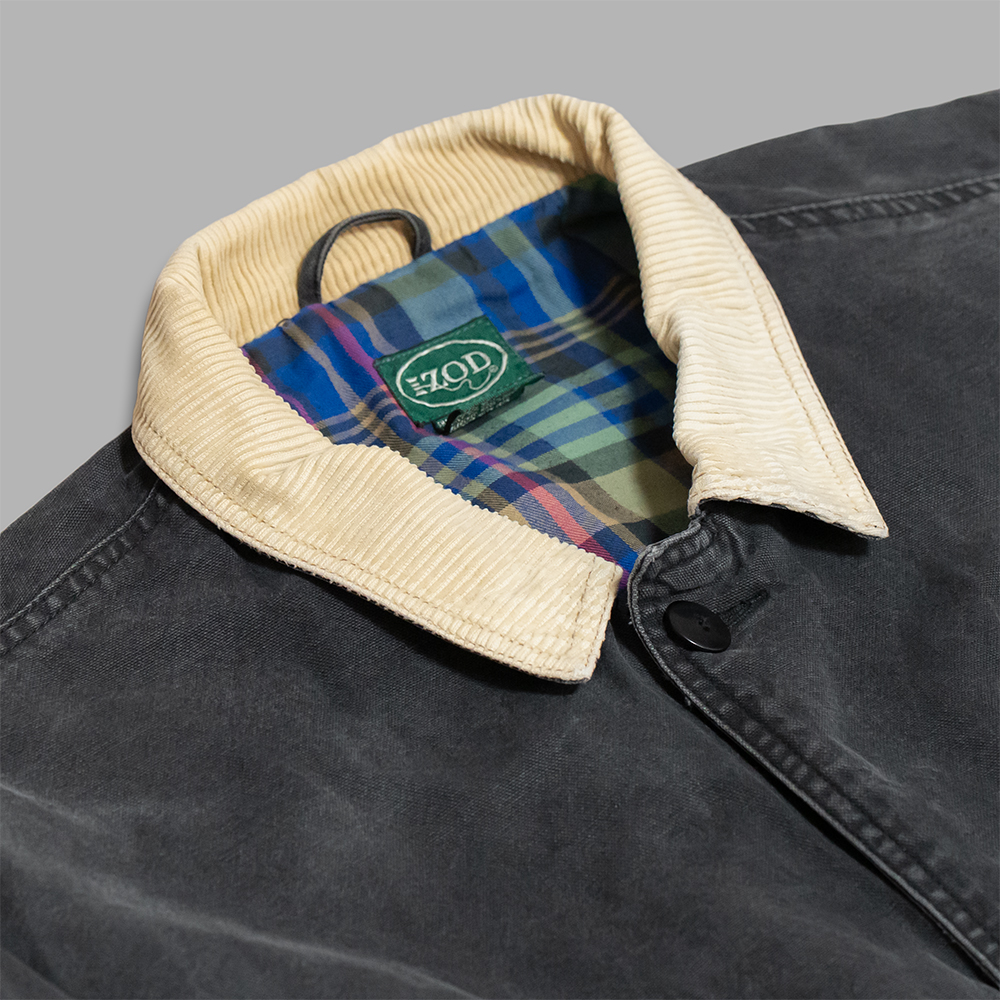 IZODは、かつてLACOSTEとライセンス契約を結び、アイビーリーガーから絶大な人気を博したブランドです。生地にはヴィンテージハンティンジャケットと同様に、コットンダックの生地が採用されており、アタリやパッカリングが綺麗に出ている雰囲気の良い1着です。また、襟や袖裏には太畝のコーデュロイがつく仕様で、お好みで、袖を1つ折り返し、袖裏のコーデュロイを覗かせる着用も可能となります。
