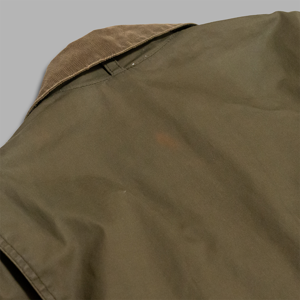 型にはハンドウォーマーポケットがつく仕様に、隠しフラップポケットのつく粋なデザインが施されています。背面には両腕の可動による生地の引っ張りを極力なくす役割やスムーズな動作を行えるようにと、アクションプリーツの仕様が採用されています。また、裏地には表地と相性の良いチェック柄が採用されています。加えて、袖裏には裏地がつき、袖が通しやすいように計算されています。