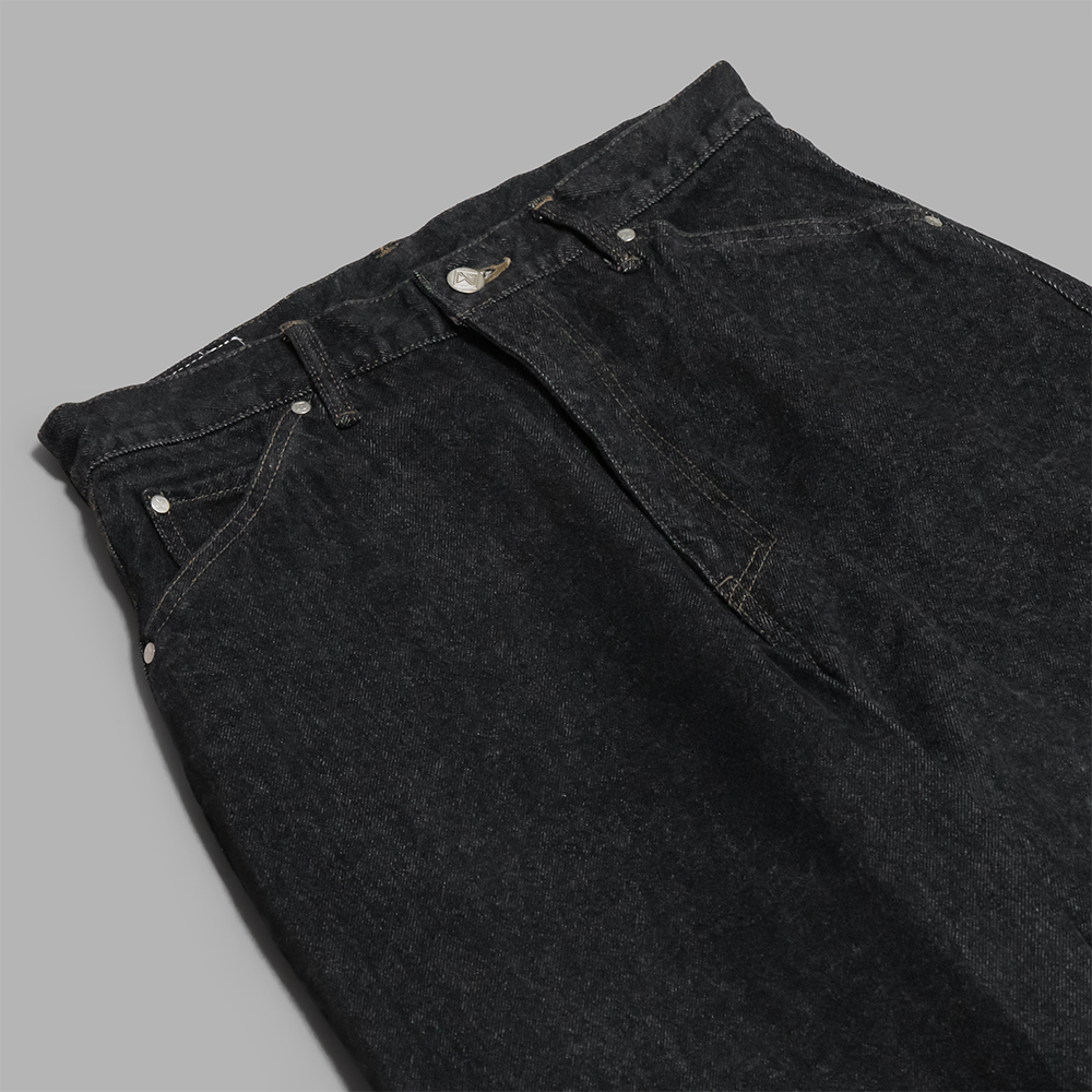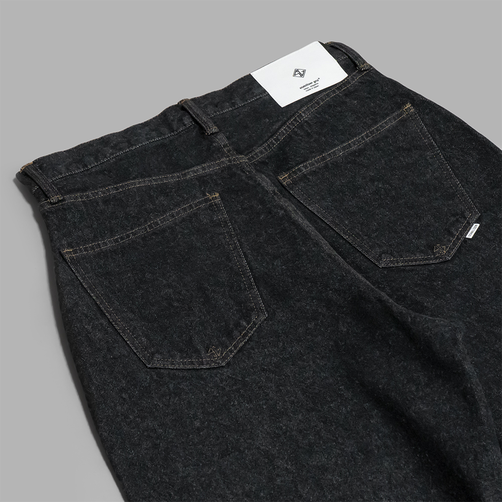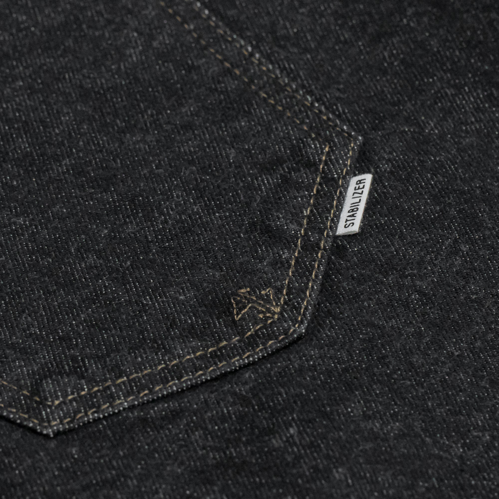 岡山にて作製されたオリジナルの13.5ozセルヴィッチデニムを使用しています。デニムの合理化が進んだ1980年代のデニムをベースに、タテ糸はブラック、ヨコ糸がホワイトで織り上げられた生地です。