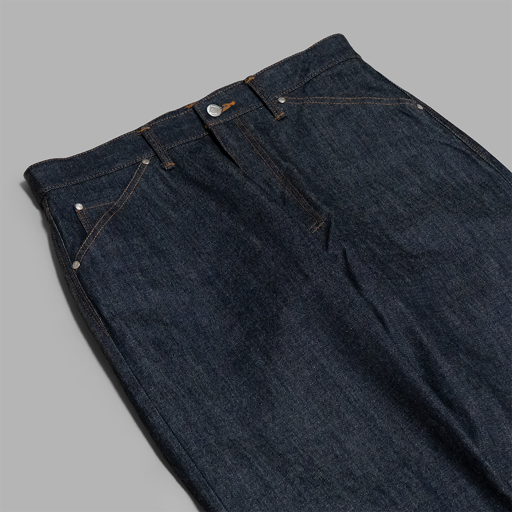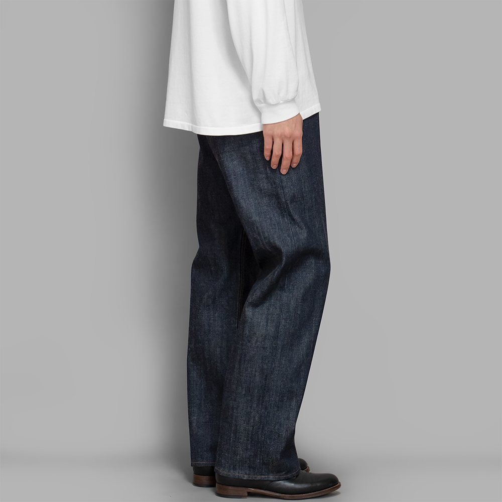 モデルは、脇がセルヴィッチ仕様のクラシックなシルエットをブランド独自の解釈で構築した、ワイドストレート型のLot.0-09です。腰廻りにシワ、もたつきが出づらく、フラットに見える独自のシルエットを開発し、取り入れています。