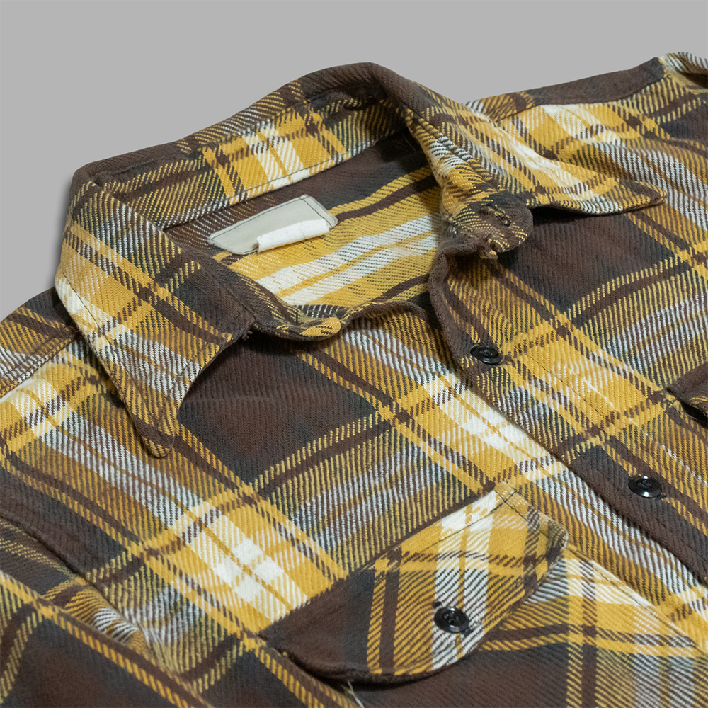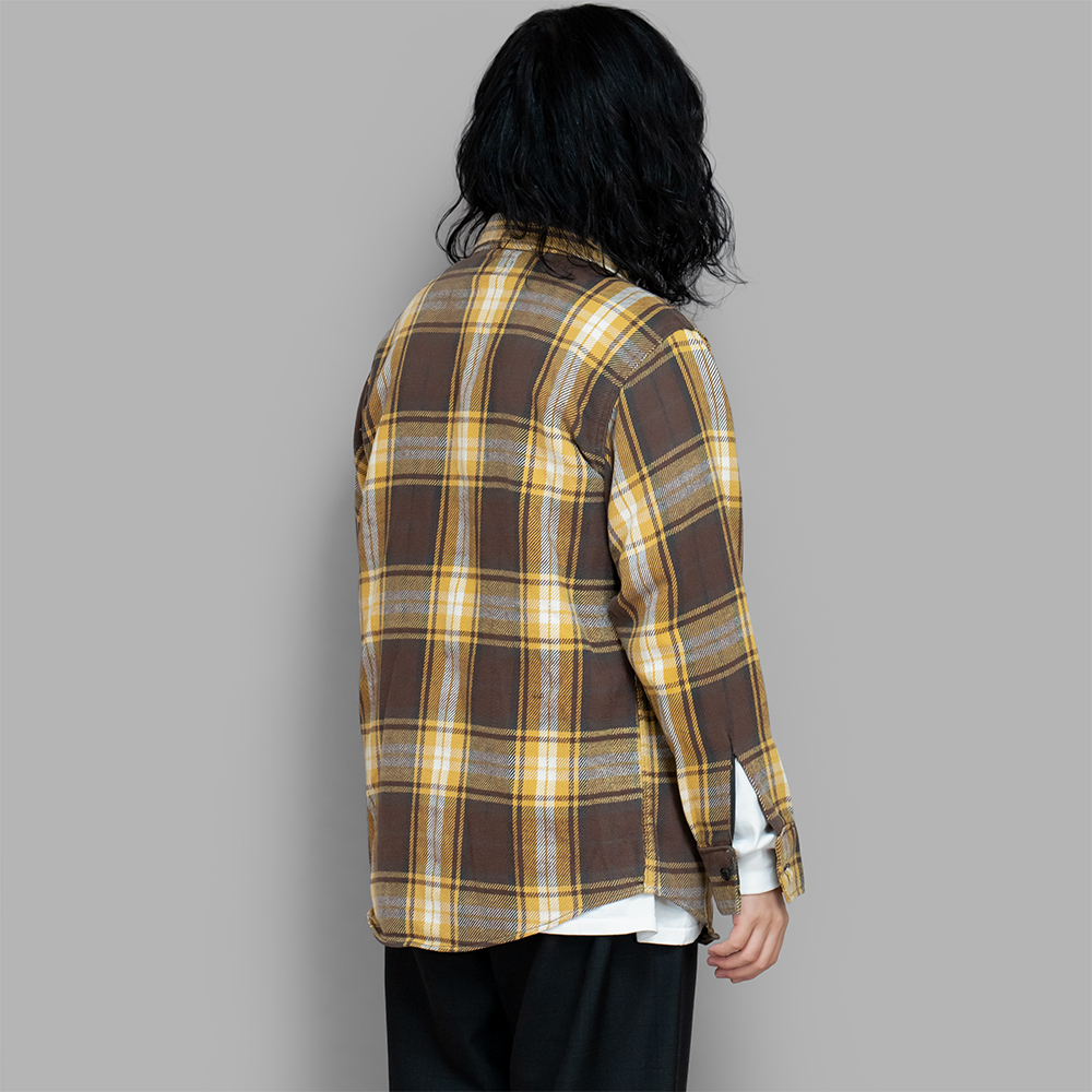 1970年代頃に生産された思われる1着です。同アイテムは、柔らかく暖かい質感とイエローとブラウンをベースとした温かみのある配色のチェックが特徴で、程良く厚みのある生地なため、秋から春先までと、3シーズンでの着用ができるのも魅力の1つです。