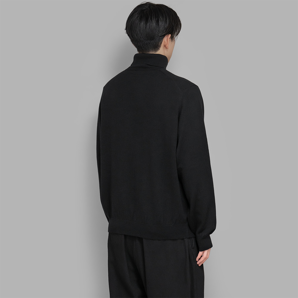 いたってオーセンティックなニットですが、サイズ感でCOMOLIらしい曖昧さがあり、一枚でサラッとあわせても雰囲気良く着こなせますし、厚みも程よく、ジャケットやコートのインナーとしても重宝します。